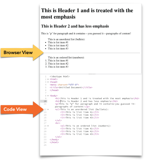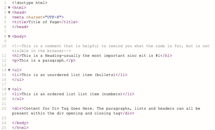 - The <!--Comment--> element is very useful to use to create notes/clues to reference. Comments are not visible in the browser.